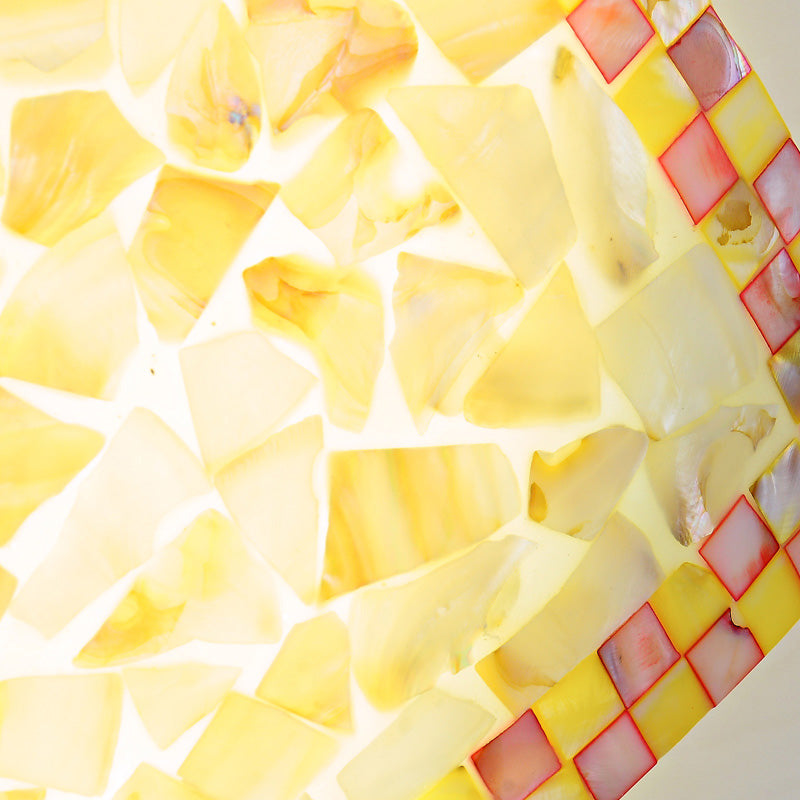 16/12W Convex Tiffany Style Stained Glass Flush Bedroom Light In Beige