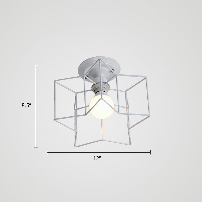 Vintage Metal Star Shaped Bedroom Ceiling Lamp - Semi Flush Mount With 5 Bulbs / White