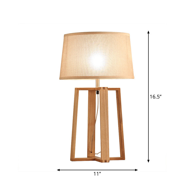 Tapered Drum Table Lamp: Contemporary Fabric Shade Wood Night Light With Trapezoid Base