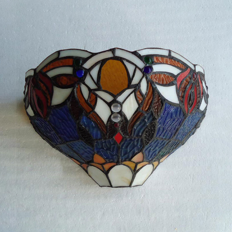 Blaue und braune Wandlampe im Tiffany-Stil – 1-flammige Kunstglas-Wandleuchte für das Wohnzimmer