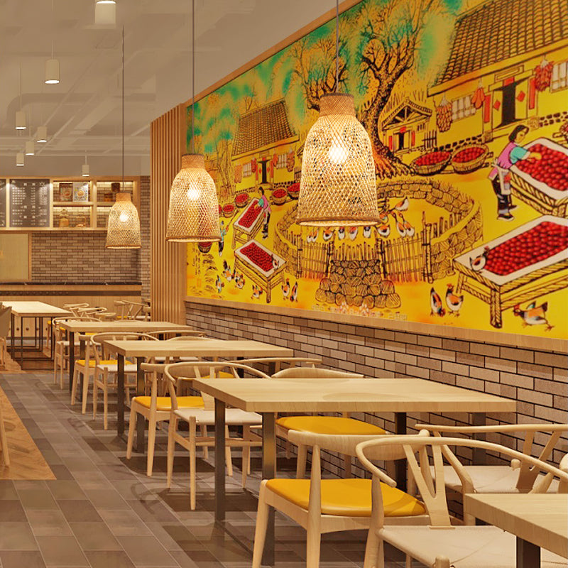 Trumpet Pendant Lighting Bamboo Wood Hanging Light Fixture