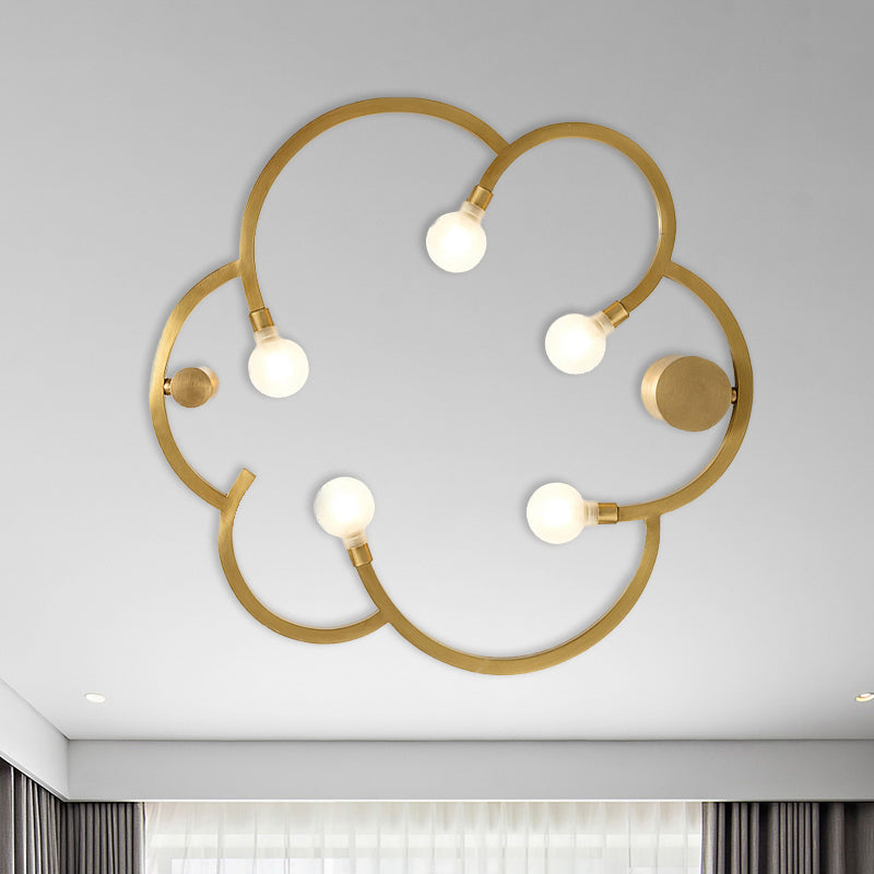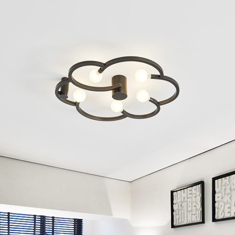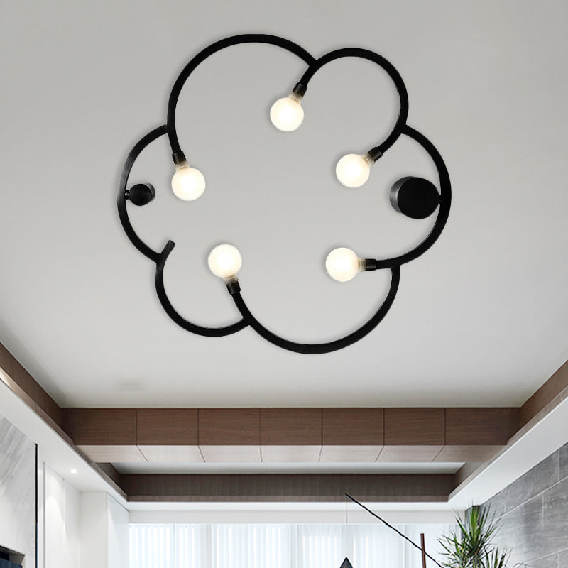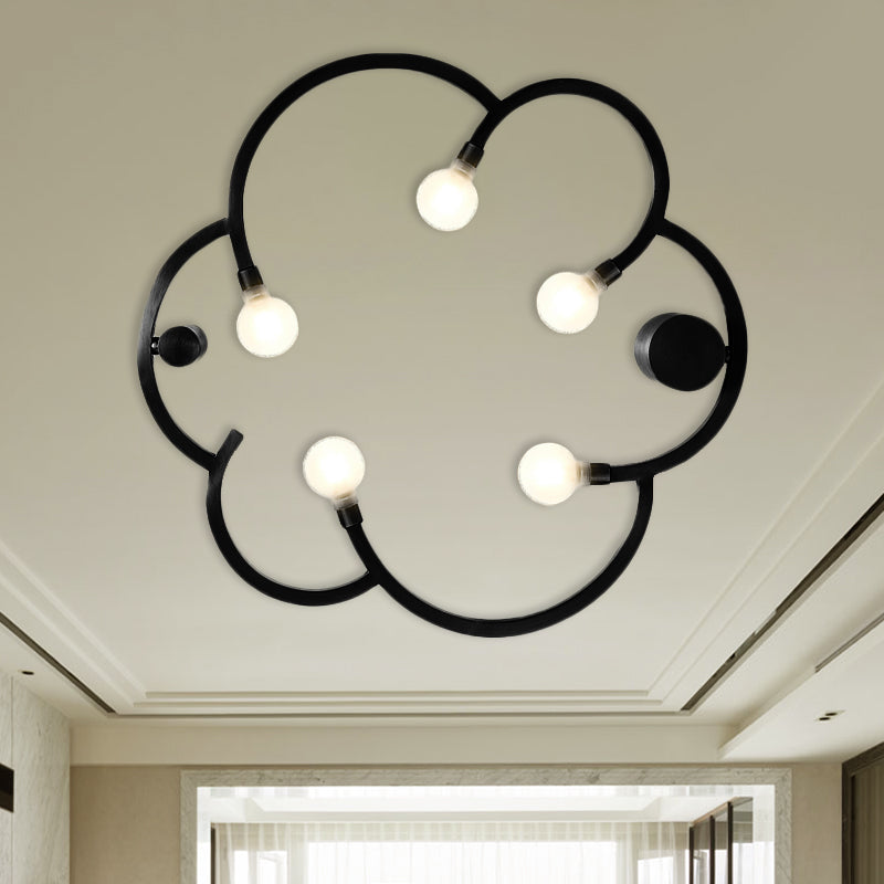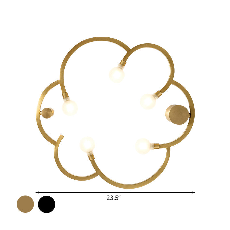 Vintage Flower Cage Iron Semi-Flush Mount Light Fixture For Bedroom - Black/Gold Finish 5 Bulb Bare