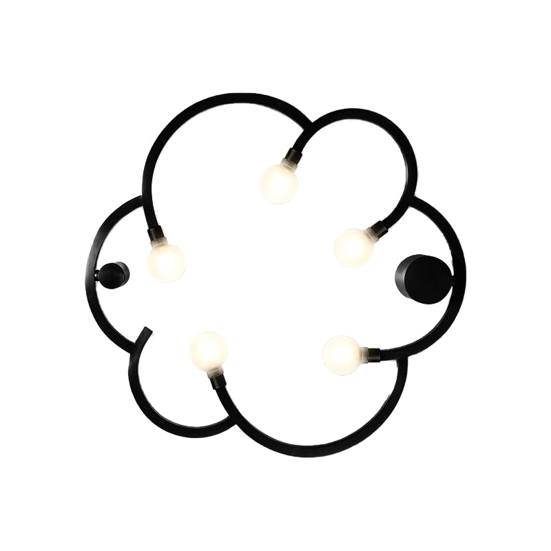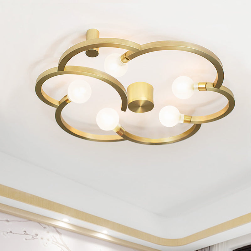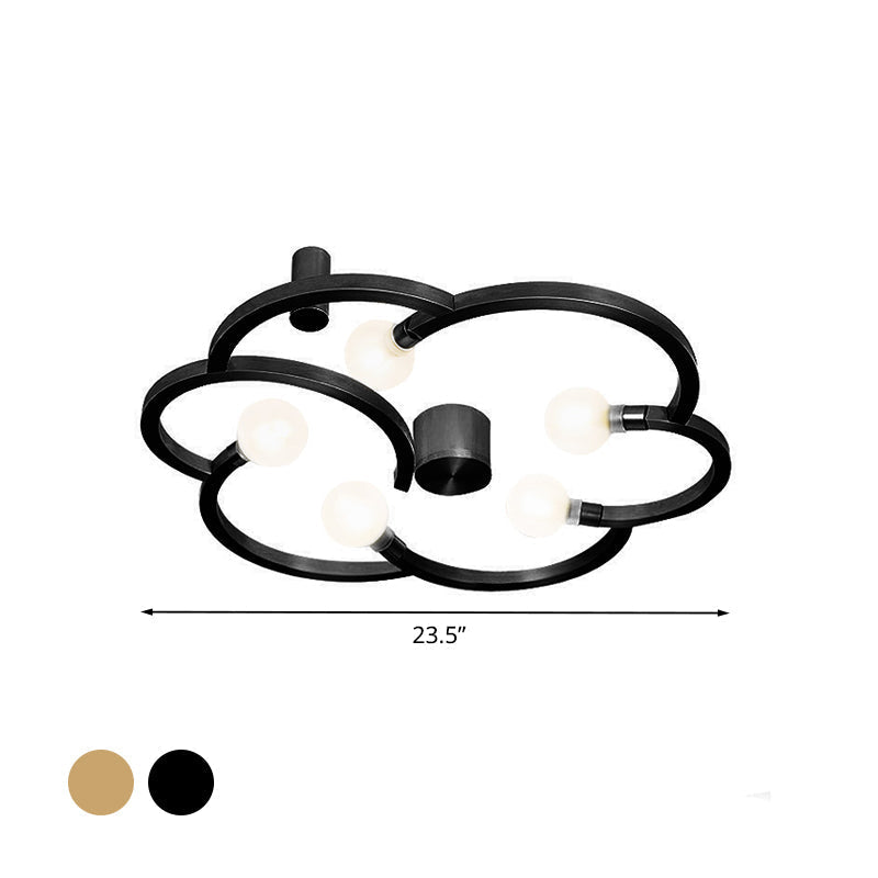 Vintage Flower Cage Iron Semi - Flush Mount Light Fixture For Bedroom - Black/Gold Finish 5 Bulb