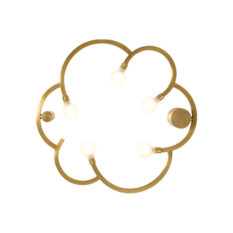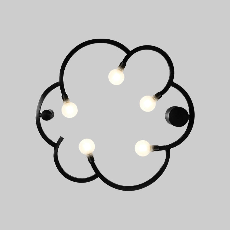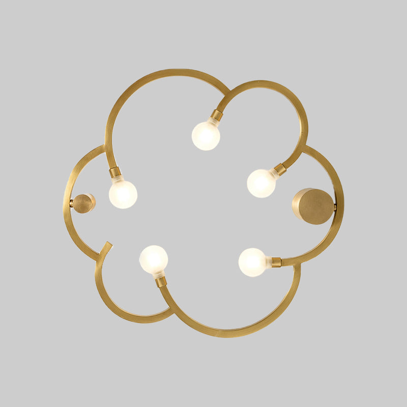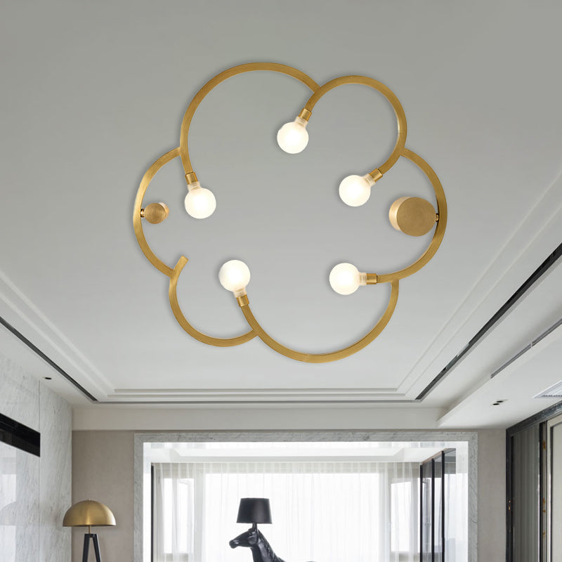 Vintage-Blumenkäfig-Leuchte aus Eisen, halbbündige Montage, für Schlafzimmer, Schwarz/Gold-Finish, 5-flammiges Design mit nackter Glühbirne