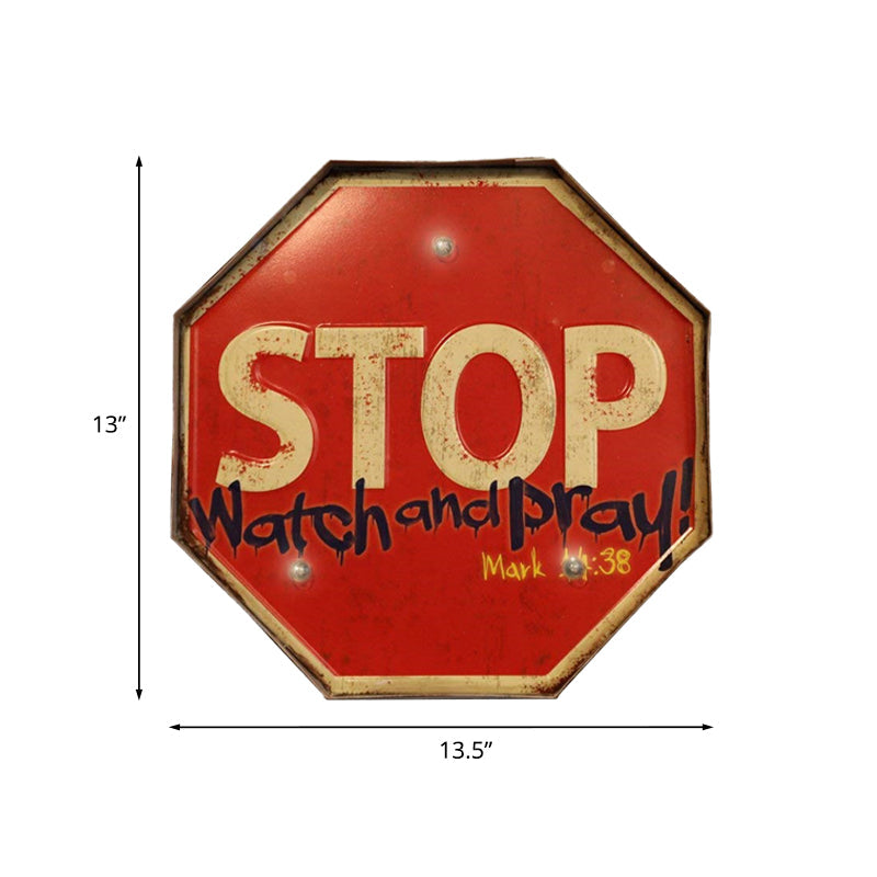 Vintage LED-Wandleuchte mit Eisenschirm und roter Warnschild-Nachtlampe