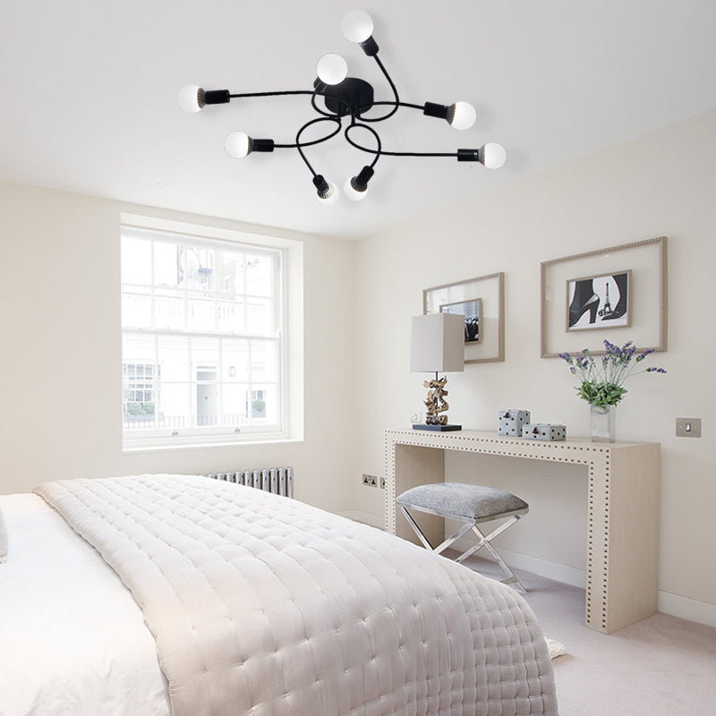 Deckenleuchte im Vintage-Stil mit gedrehtem Arm und 8 Lichtern, halbbündige Montage in Schwarz/Weiß für Wohnzimmer