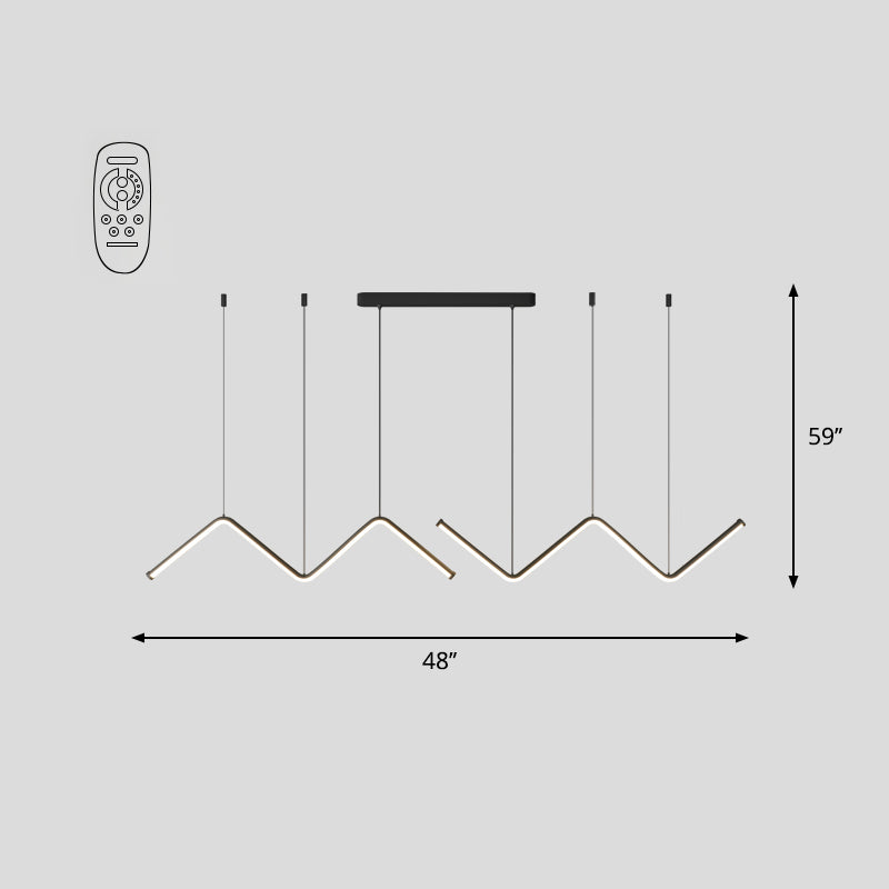 W-Shaped Led Pendant Light Fixture: Stylish Artistic Metal Island For Dining Room Black / 48 Remote