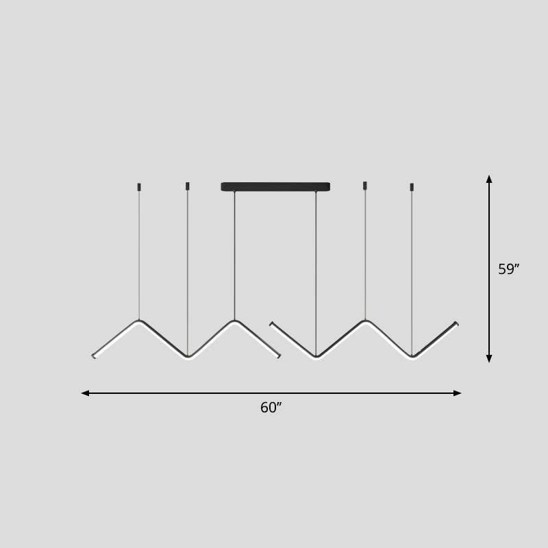 W-Shaped Led Pendant Light Fixture: Stylish Artistic Metal Island For Dining Room Black / 60 Third