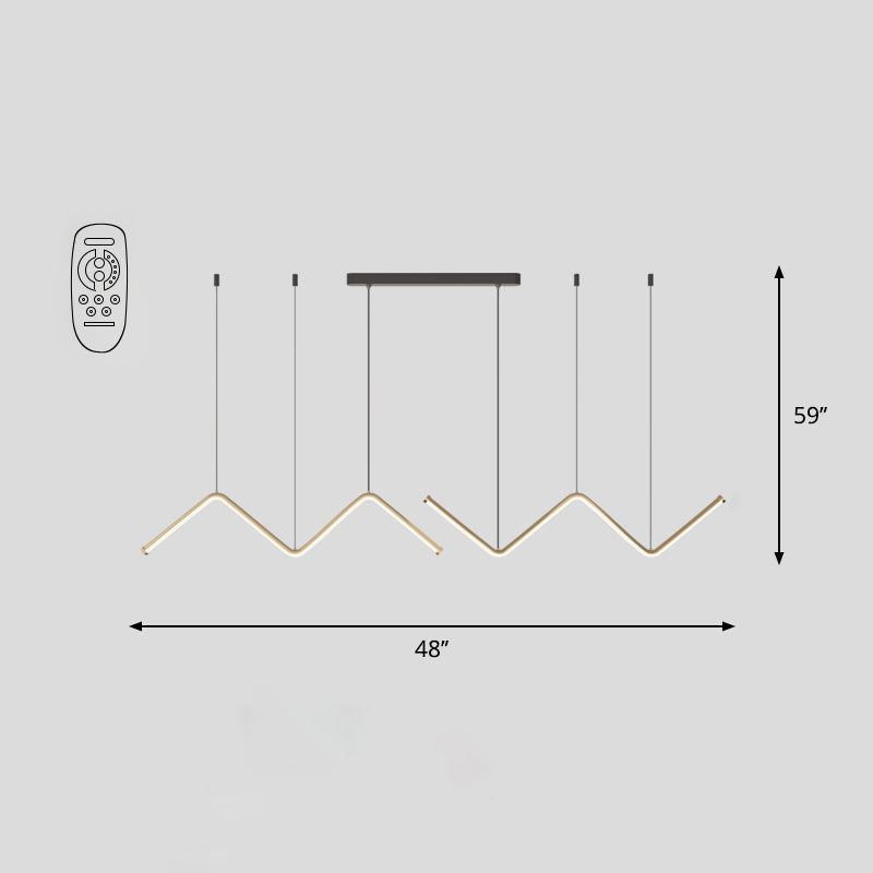 W-Shaped Led Pendant Light Fixture: Stylish Artistic Metal Island For Dining Room Gold / 48 Remote