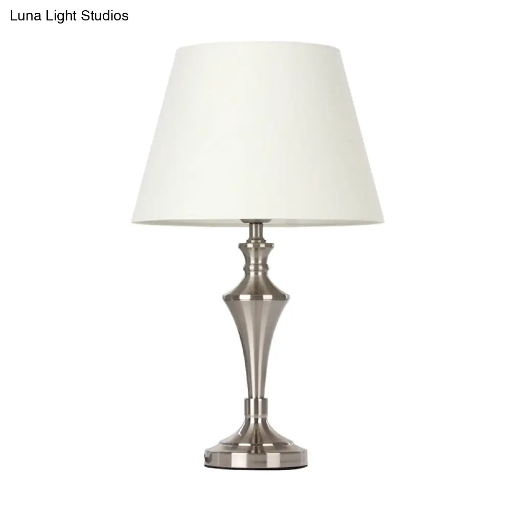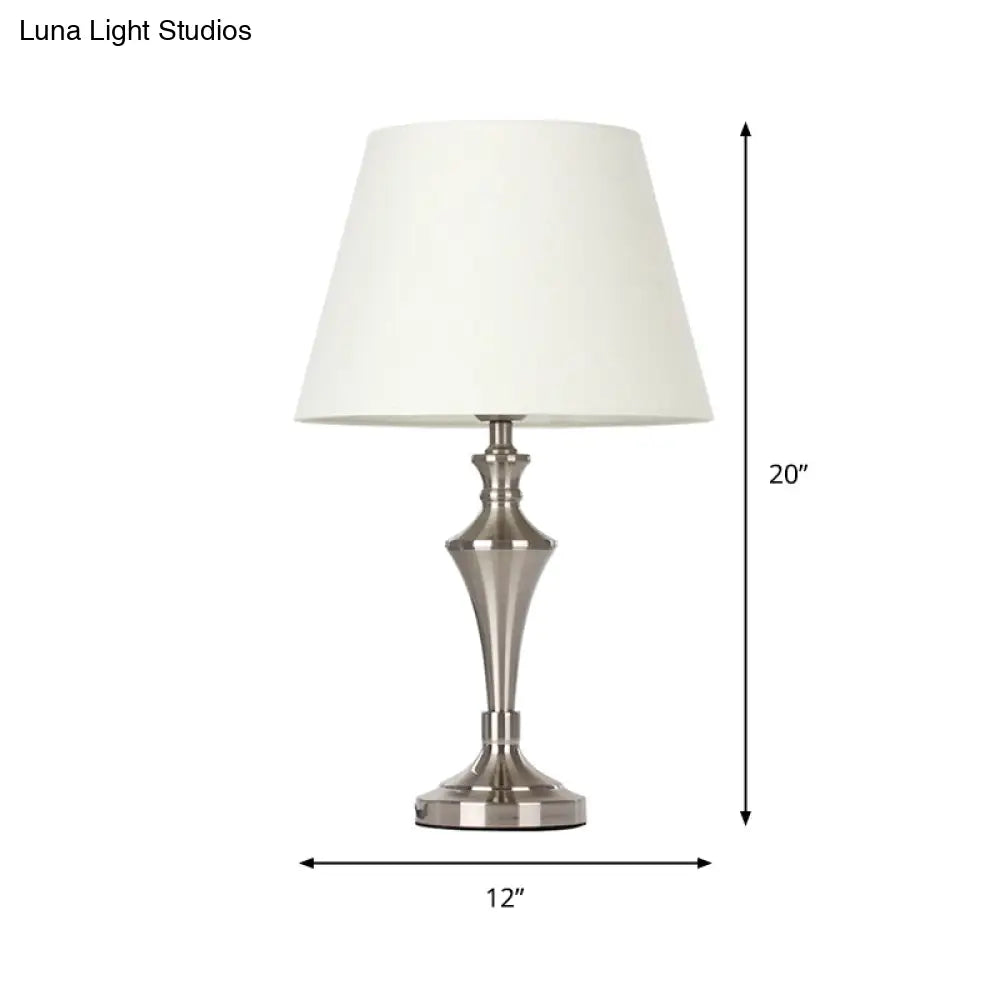 Modern White Fabric Table Lamp With Conical Shade - Perfect For Living Room Nightstands