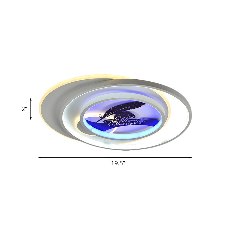 Moderne weiße Deckenleuchte: LED-Deckenleuchte aus Acryl mit eleganten Mustern – Blume, Hirsch, Feder
