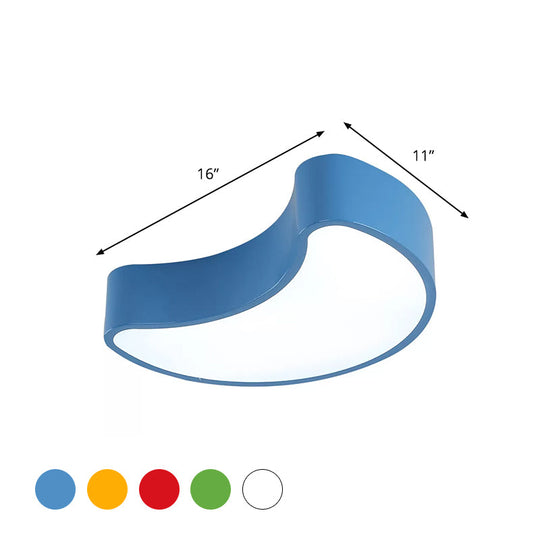 Semi-Moon Led Acrylic Flush Mount Ceiling Fixture For Kids’ Leisure Area - White/Red/Yellow Lighting