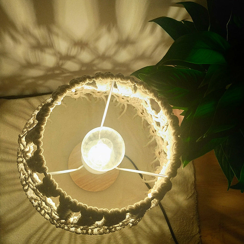 Gelbe handgewebte Seil-Tischlampe mit Quastenfransen – 1 Kopf Nachtbeleuchtung